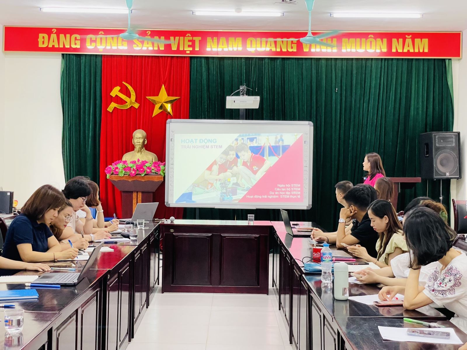 Buổi tập huấn doThạc sĩ Vũ Thị Ngọc Thúy - Phó trưởng khoa Kĩ thuật Sư phạm, trường ĐH Sư phạm Hà Nội hướng dẫn. Nội dung tập huấn nhằm nâng cao nhận thức cho đội ngũ cán bộ, giáo viên về vị trí, vai trò và ý nghĩa của giáo dục STEM trong Chương trình Giáo dục phổ thông cấp Tiểu học. Thống nhất nội dung, phương pháp hình thức tổ chức các hoạt động giáo dục STEM, tạo hứng thú, khơi gợi niềm say mê học tập, giúp học sinh khám phá tiềm năng của bản thân, khám phá khoa học công nghệ, phát huy tính tích cực sáng tạo và vận dụng vào giải quyết vấn đề trong bối cảnh cụ thể của thực tiễn cuộc sống. Buổi tập huấn còn tạo cơ hội cho các giáo viên và chuyên gia trong lĩnh vực STEM cùng nhau chia sẻ kinh nghiệm giảng dạy, giải đáp thắc mắc liên quan đến nội dung chương trình, hỗ trợ định hướng tích hợp các phương pháp giáo dục vào mỗi bài giảng, giúp bài giảng thêm sinh động và gần gũi hơn với học sinh. Đồng thời, quy trình thiết kế kĩ thuật và quy trình khám phá khoa học trong bài học STEM cũng được tác giả chia sẻ cụ thể với toàn thể cán bộ, giáo viên trong Nhà trường.