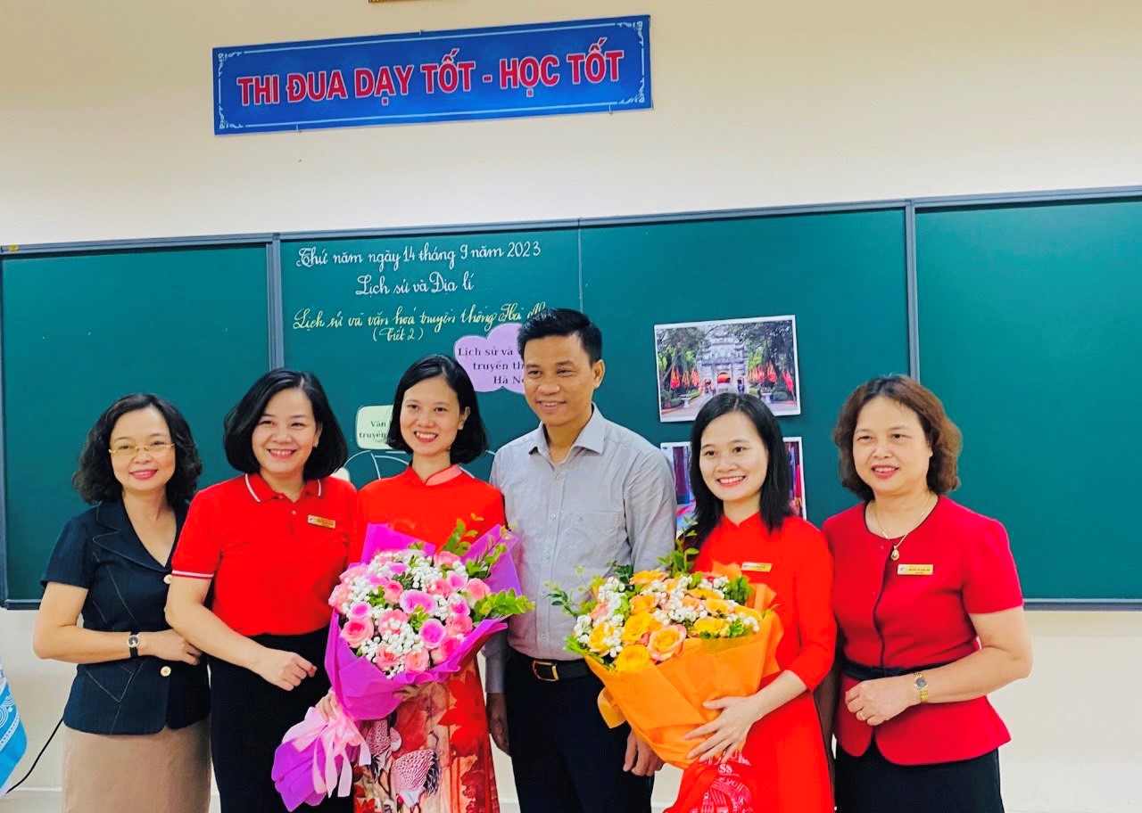Ở tiết học Lịch sử, cô giáo Phạm Thị Hoài Thu đã dẫn dắt học sinh phát hiện, trao đổi, thảo luận tìm hiểu lịch sử thông qua việc mô tả được một số nét văn hóa lễ hội ở địa phương như: Hội làng Gia Quất, hội làng Lệ Mật, hội làng Bắc Biên,… và kể những câu chuyện về một trong số các danh nhân ở Hà Nội: Cao Bá Quát- Văn hay chữ tốt, Thái úy Lý Thường Kiệt và trận chiến trên sông Như Nguyệt, Chu Văn An – Người thầy mẫu mực,… Các hoạt động hỏi đáp, diễn kịch, sáng tác thơ vè, xem video, thảo luận nhóm,…đã lôi cuốn các em học sinh tham gia tiết học.