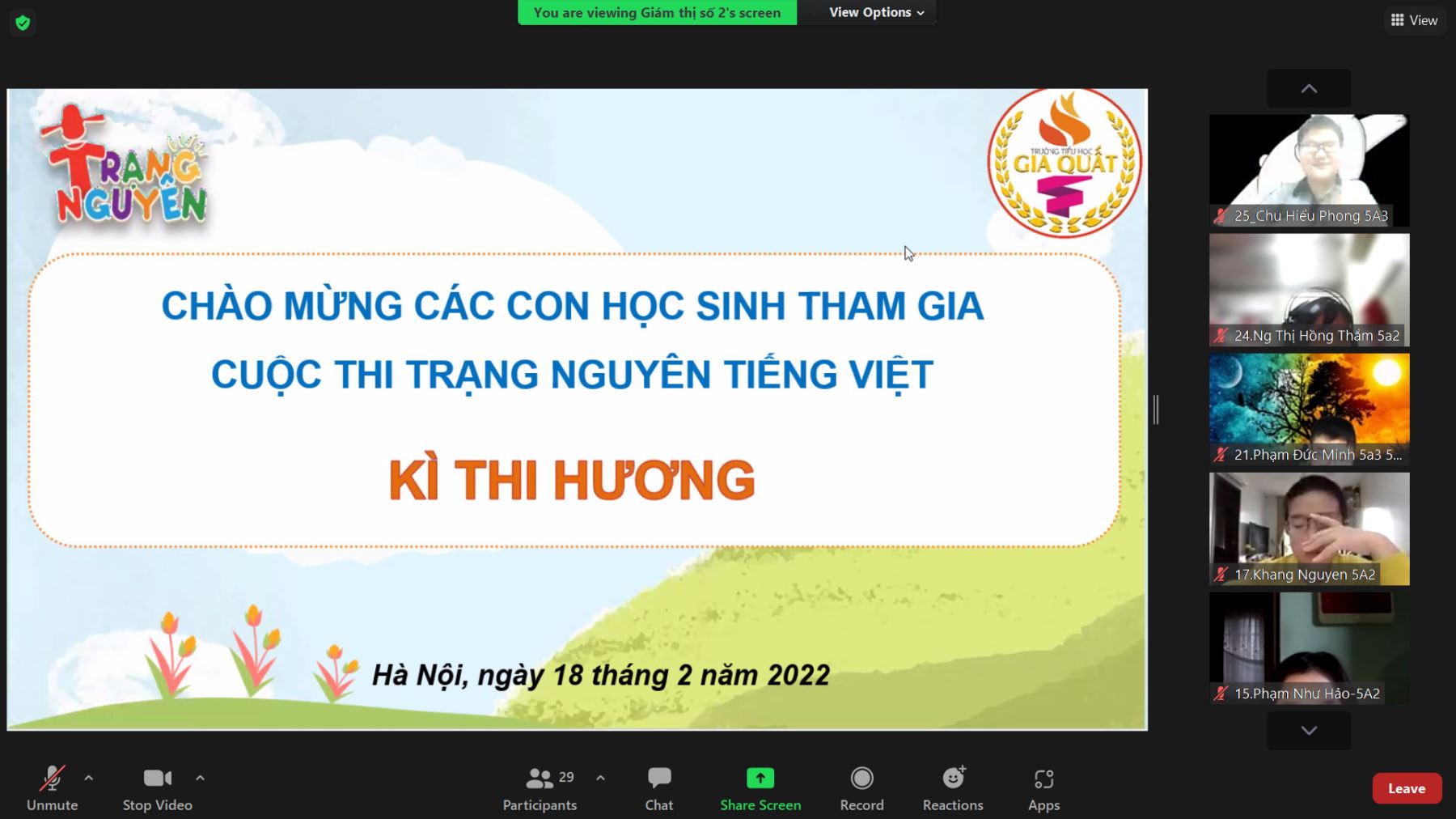 Tham gia vòng thi cấp Huyện có 47 học sinh khối 1, 33 học sinh khối 2, 29 học sinh khối 3, 18 học sinh khối 4, 26 học sinh khối 5 là những bạn học sinh đã xuất sắc vượt qua vòng thi cấp Trường. Với những kinh nghiệm đã có tại vòng thi cấp Trường, các bạn học sinh đã chuẩn bị tốt về thiết bị dự thi, thiết bị giám sát, đường truyền internet. Các giáo viên trông, giám sát thi thực hiện nghiêm túc những quy định trong quy chế thi theo hướng dẫn của ban tổ chức. Theo ghi nhận tại ca thi sáng nay, các bạn học sinh đều hoàn thành bài thi và nộp bài thành công, nhiều bạn đạt kết quả cao.
