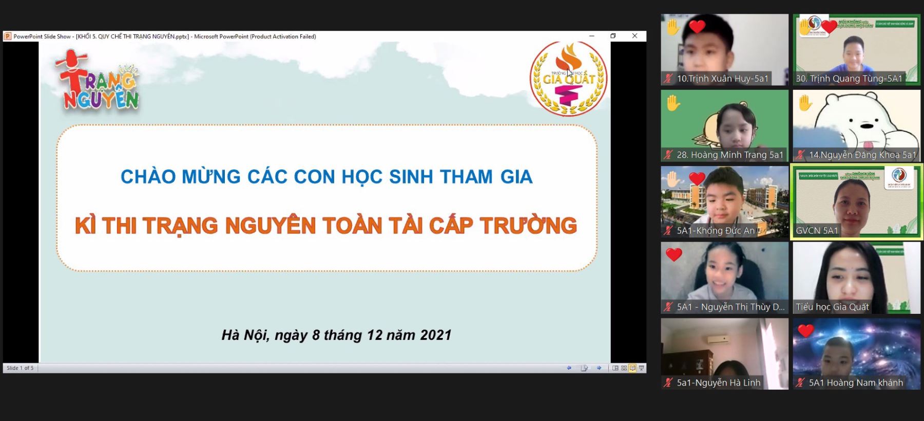 Ngày 8/11/2021, nhà trường đã tổ chức vòng thi cấp Trường cho học từ khối 1 đến khối 5 với hình thức trực tuyến (giám sát qua phần mềm Zoom).