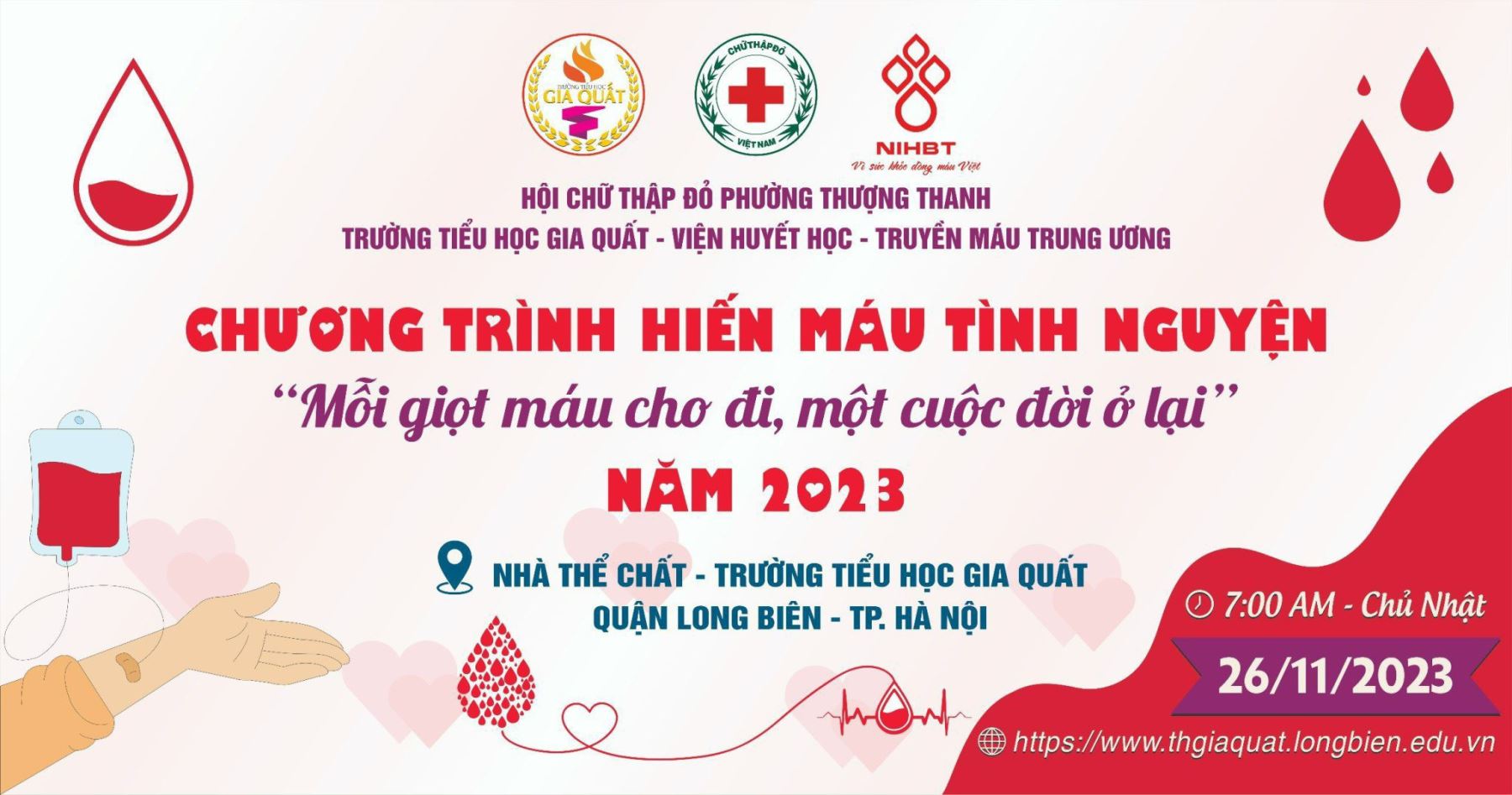 Hội Chữ Thập đỏ phường Thượng Thanh và Trường Tiểu học Gia Quất kết hợp với Viện Huyết học Truyền máu Trung ương tổ chức chương trình Hiến máu tinh nguyện "Một giọt máu cho đi - Một cuộc đời ở lại".