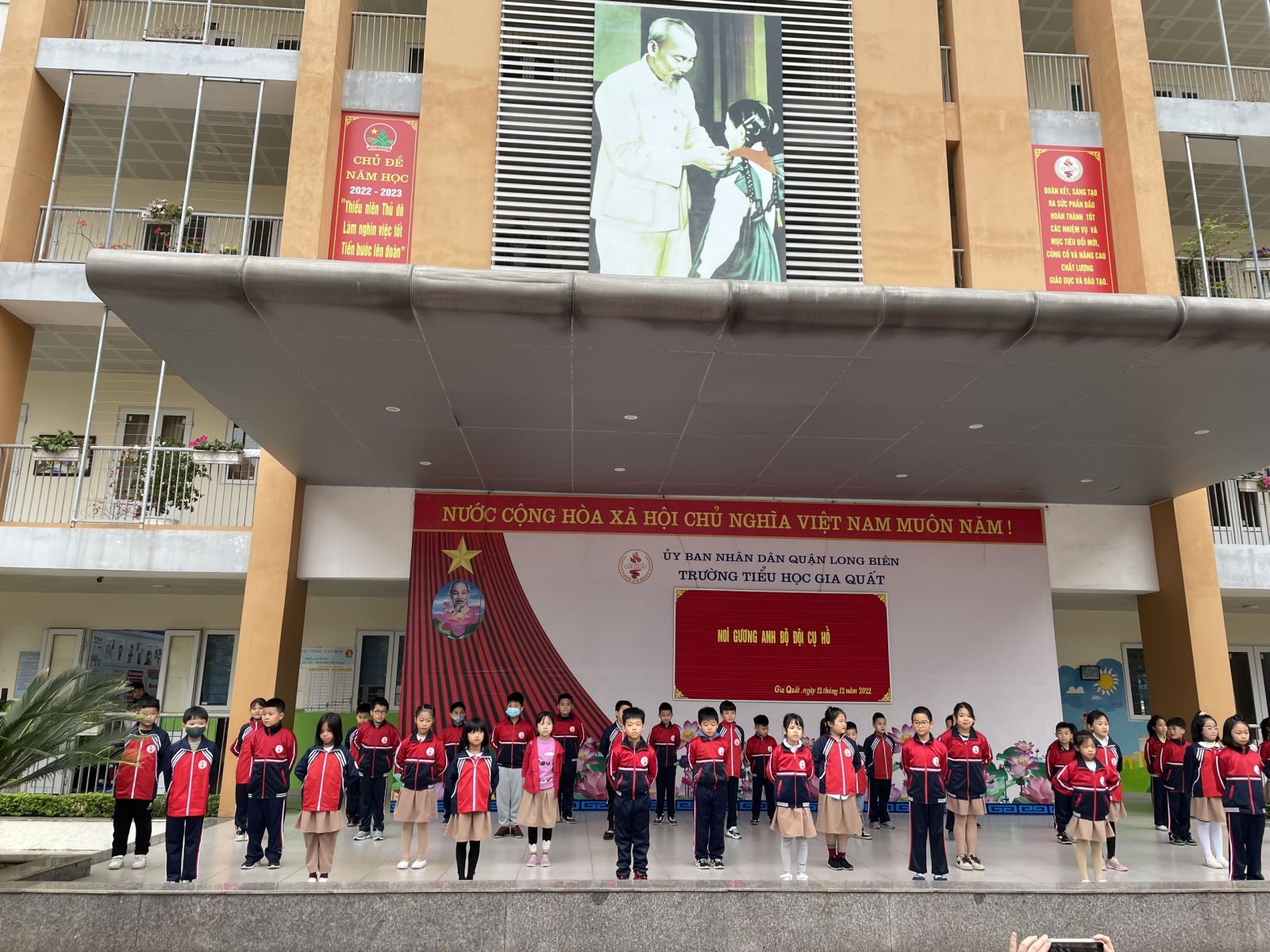 Sáng ngày 12/ 12/ 2022 trường Tiểu học Gia Quất đã tổ chức buổi sinh hoạt dưới cờ với chủ đề “ Noi gương anh bộ đội cụ Hồ”. Tại buổi sinh hoạt dưới cờ, tập thể CB, GV, NV và các em học sinh đã được nghe lại những truyền thống tốt đẹp, hào hùng của các thế hệ Anh bộ đội Cụ Hồ qua các thời kỳ: từ kháng chiến chống Pháp, đến kháng chiến chống Mỹ, rồi đến các trận đánh phía Bắc.