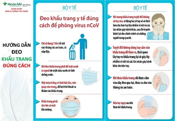Lưu ý: Không chạm tay vào mặt ngoài khẩu trang trong suốt quá trình sử dụng. Nếu chạm vào phải rửa tay đúng cách với xà phòng hoặc dung dịch rửa tay sát khuẩn có chứa ít nhất 60% cồn.