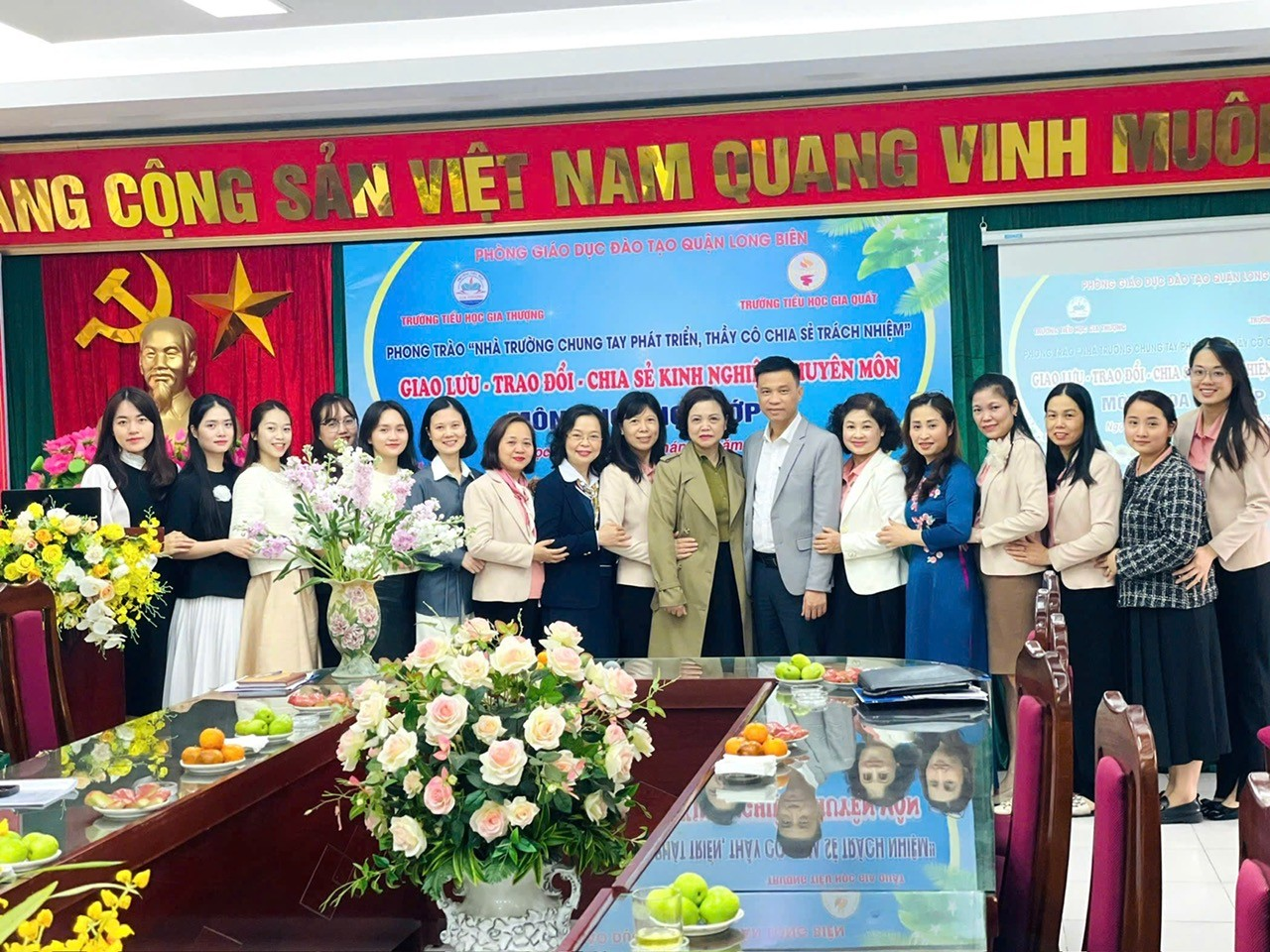 Buổi giao lưu có sự tham gia của đồng chí Ngô Quốc Anh – Phó trưởng PGD&ĐT Quận Long Biên, Ban Giám hiệu, cán bộ quản lý và giáo viên của hai trường.