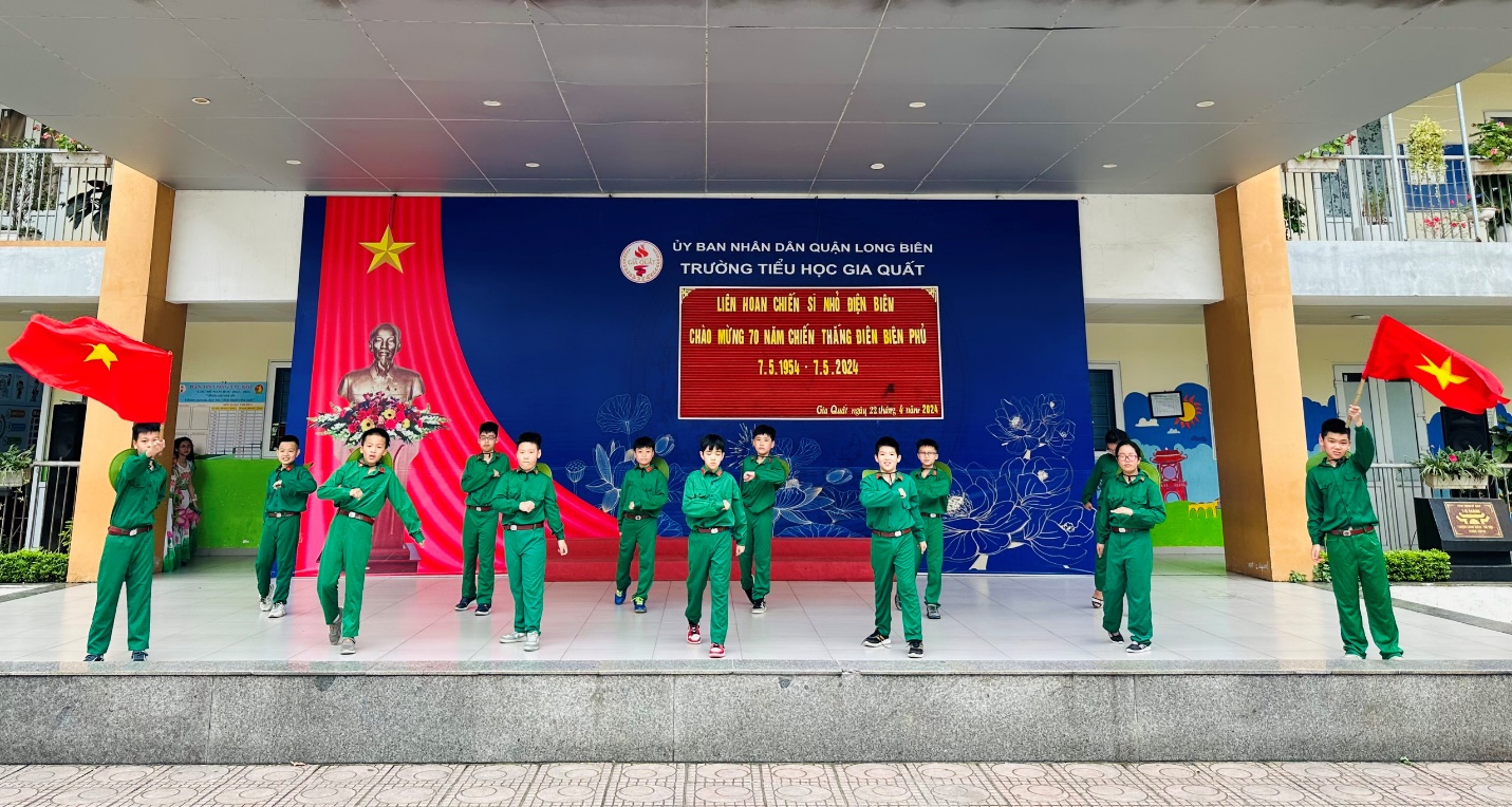 Sau nghi lễ chào cờ, để hưởng ứng chào mừng kỷ niệm 70 năm chiến thắng lịch sử Điện Biên Phủ (7/5/1954-7/5/2024); thực hiện kế hoạch số 208-KH/HĐĐTP ngày 06/1/2024 của Hội đồng Đội Thành phố về việc tổ chức các hoạt động Thiếu nhi Thủ đô kỷ niệm 70 năm Chiến thắng Điện Biên Phủ, hướng tới chào mừng kỷ niệm 83 năm Ngày thành lập Đội TNTP Hồ Chí Minh (15/5/1941 – 15/5/2024), chi đội 5A2 và chi đội 5A3 đã thực hiện chương trình văn nghệ trực tuần với những tiết mục đặc sắc.