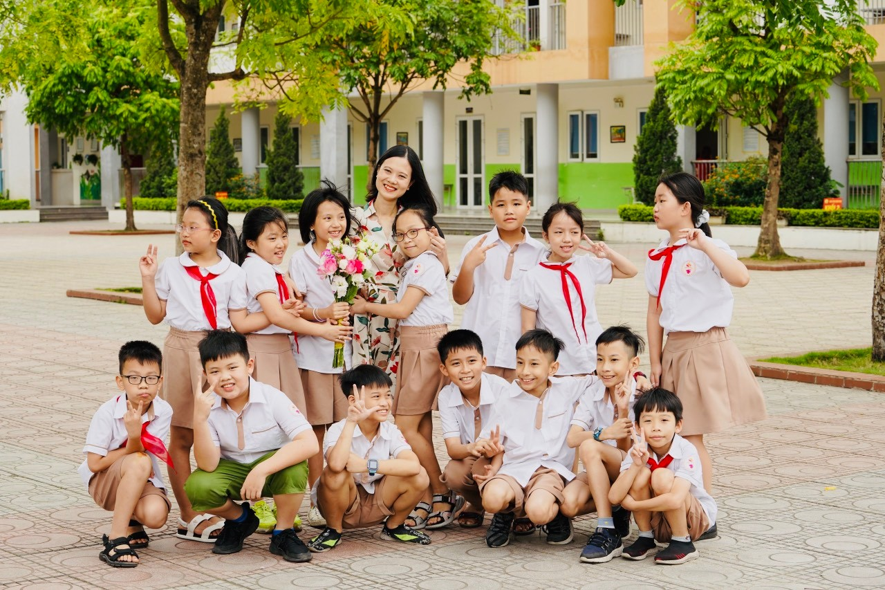 Ảnh: Cô Hoài Thu cùng học sinh
