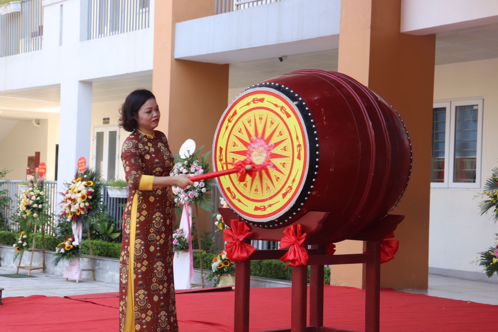 Cô giáo Nguyễn Thị Phượng - Bí thư Chi bộ, Hiệu trưởng nhà trường đã đọc diễn văn chào mừng và đánh trống khai giảng năm học mới. Thời khắc khai trường đã đến, tiếng trống tưng bừng, rộn rã vang lên, tiếng trống như thúc giục thầy và trò nhà trường hãy nỗ lực, thi đua Dạy tốt - Học tốt đạt được nhiều thành tích cao hơn nữa.