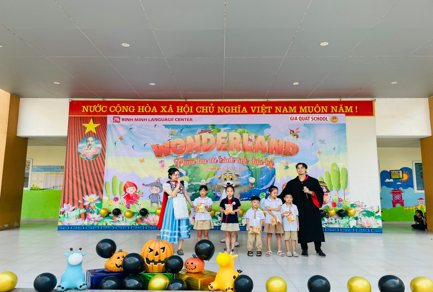 Sáng ngày 25/10/2023, trung tâm Tiếng Anh Bình Minh Language center đã tổ chức cho toản thể học sinh trường Tiểu học Gia Quất buổi giao lưu Tiếng Anh với chủ đề “PHIÊU LƯU TỚI HÀNH TINH DIỆU KỲ”. Các em được khám phá rất nhiều các trải nghiệm thú vị diệu kì từ hành tinh trong chuyến phiêu lưu.