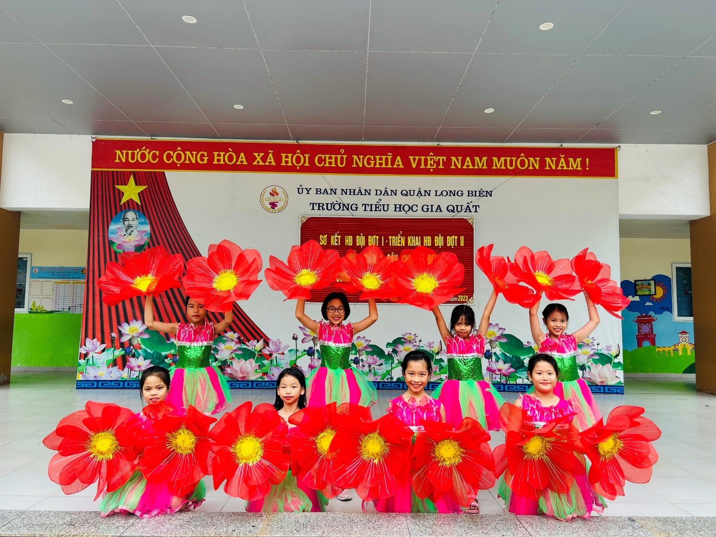 Cuối cùng là tiết mục văn nghệ “Hoa thơm dâng Bác” do tốp ca học sinh và tốp múa phụ họa lớp 4A3 trình bày.
