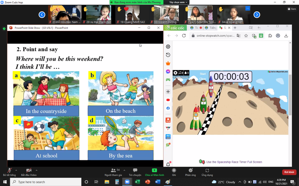 Để có được những tiết học thật sự hiệu quả và lôi cuốn, chiều ngày 21/10/2021 trường Tiểu học Gia Quất tổ chức chuyên đề môn Tiếng Anh lớp 5 do cô giáo Nguyễn Nhã Phương giảng dạy. Cô là một cô giáo trẻ đầy tâm huyết với nghề, chuyên môn vững, ham học hỏi. Cô đã chuẩn bị bài dạy rất sinh động, phong phú mang đến nhiều hấp dẫn cho học sinh trong tiết học. Giọng nói truyền cảm, cách thể hiện bài giảng tự tin. Các con học sinh phối hợp nhịp nhàng, hăng hái phát biểu, nói to, rõ ràng. Trong bài dạy, giáo viên sử dụng linh hoạt các hình thức dạy học giúp các em có thêm vốn từ, phát triển kỹ năng đọc, diễn đạt, lắng nghe cũng như kĩ năng học tập trực tuyến…