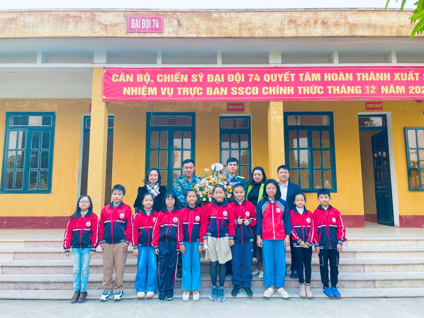 Đại diện nhà trường, cô giáo Nguyễn Thị Phượng – Hiệu trưởng nhà trường cũng gửi lời thăm hỏi, động viên, chia sẻ với những hi sinh thầm lặng của cán bộ chiến sĩ C74, mong các đồng chí luôn mạnh khỏe, vững vàng trên mọi mặt trận và đồng hành cùng nhà trường trong nhiều hoạt động.