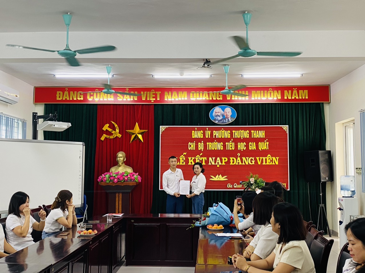 Chiều ngày 09/12/2023, được sự đồng ý của Đảng ủy phường Thượng Thanh, Chi bộ trường Tiểu học Gia Quất long trọng tổ chức Lễ kết nạp Đảng viên mới cho quần chúng ưu tú Nguyễn Thành Nam. Sự kiện khẳng định tinh thần, ý chí phấn đấu quyết tâm đứng vào hàng ngũ Đảng của giáo viên, nhân viên trong nhà trường.