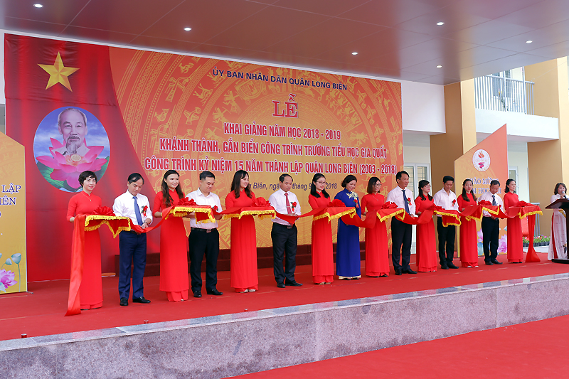Cũng trong buổi Lễ khai giảng, nghi lễ cắt băng khánh thành, gắn biển công trình kỉ niệm 15 năm thành lập quận được tổ chức trang trọng. Các đồng chí lãnh đạo đã trao quyết định, tặng hoa và tham dự cắt băng khánh thành, gắn biển công trình kỉ niệm 15 năm thành lập quận Long Biên cho nhà trường.