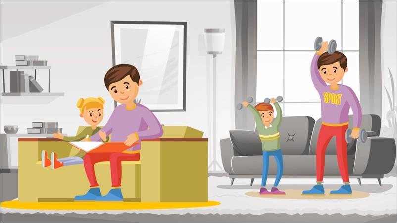 Thứ hai, là lời khuyên về các vận động trong gia đình. Các bố mẹ và các con có thể cùng nhau tập các bài thể dục có rất nhiều trên các phương tiện thông tin, khuyến khích các con vận động, thực hiện các bài tập thay vì ngồi một chỗ. "Sự vận động rất tốt cho thể chất và tinh thần của các con"- bà Lesley Miller